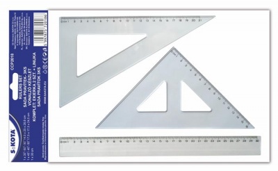 Vonalzókészlet, műanyag, 3 darabos, SAKOTA