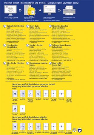 Etikett, 99,1x139 mm, poliészter, időjárásálló, AVERY ZWECKFORM, fehér, 80 etikett/csomag