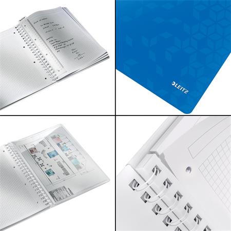 KezdőlapIrodaszerekIrodai papíráruFüzetek, gyűrűskönyvbetétekSpirálfüzet, A4, kockás, 80 lap, LEITZ "Wow", kék