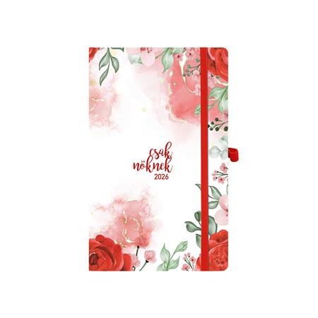 Naptár, tervező, A5, heti, TOPTIMER, "Csak Nőknek", piros virág